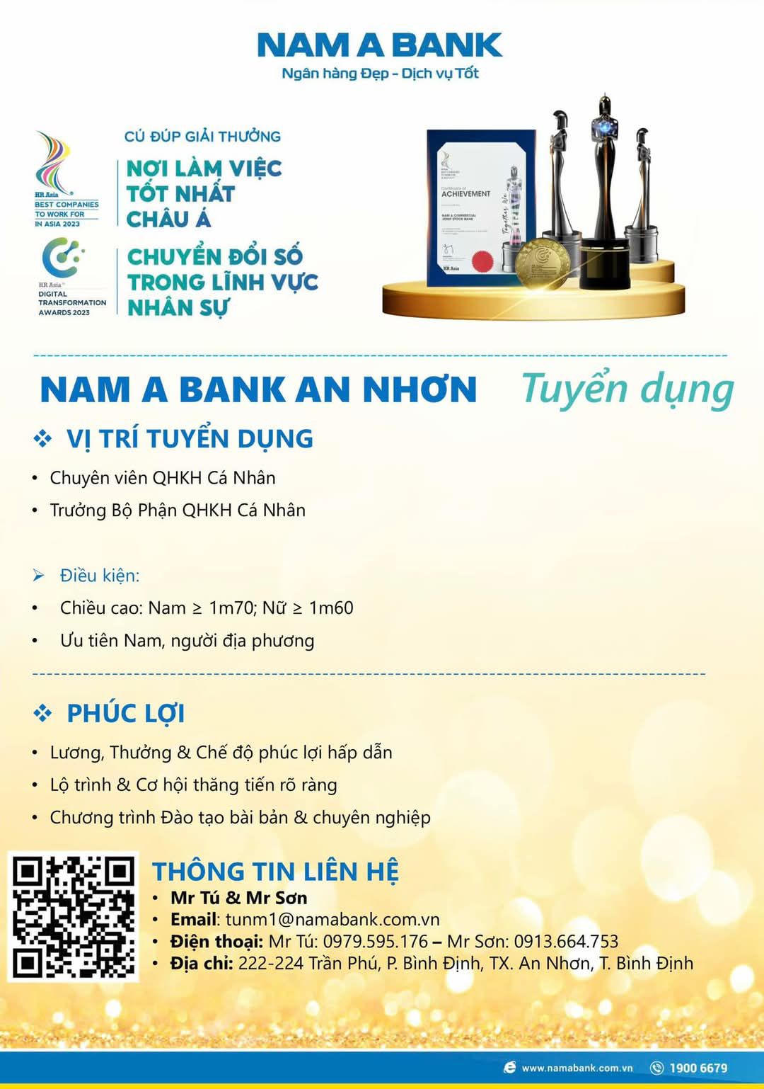 am A Bank – "Nơi làm việc tốt nhất Châu Á" thông báo tuyển dụng nhân sự làm việc tại khu vực An Nhơn với các vị trí và yêu cầu cụ thể như sau: